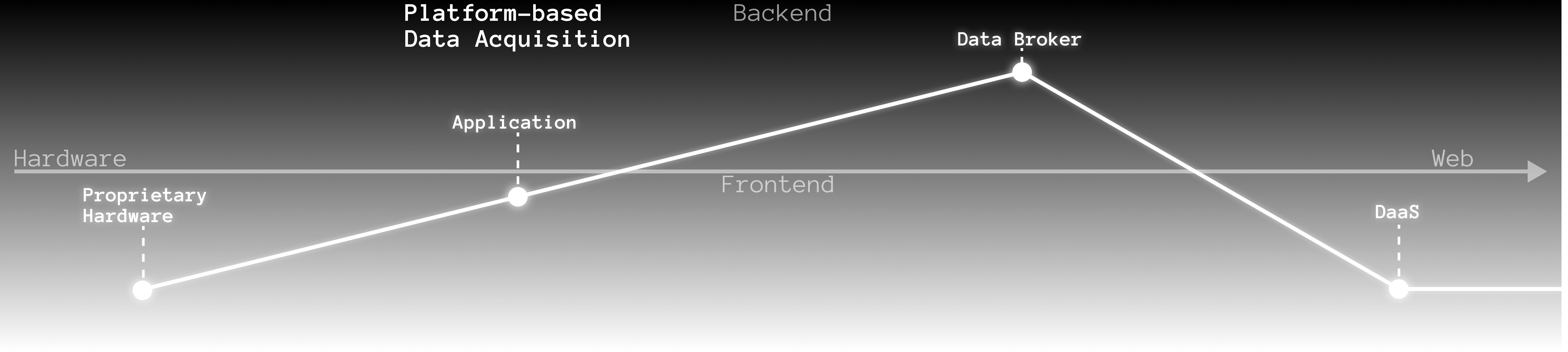 In the graph, I mapped out the major nodes in a typical platform-based data acquisition system. It is a complex system that stretches across physical and digital, client-side and server-side. It is mediated by the Internet.
